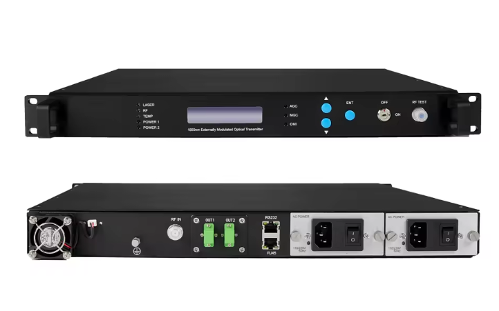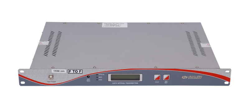 The 1550 Optical Transmitter is a professional-grade fiber optic transmission device used in CATV, FTTH, and broadband fiber networks. Operating at the 1550nm wavelength, this transmitter delivers low attenuation, high output stability, and long-distance signal transmission. It is widely deployed by cable TV operators, ISPs, and fiber network providers for reliable RF and video signal distribution.This 1550 Transmitter for CATV networks ensures excellent signal quality, reduced noise, and consistent output across extended fiber links. It is ideal for headend systems, digital TV transmission, and broadband distribution, where stable optical performance is critical.