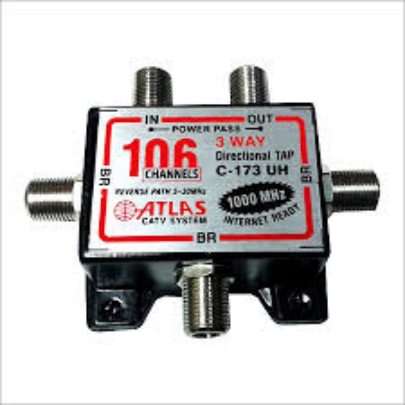 The 3 Way Tap-Off is a professional RF signal distribution device designed for CATV and cable TV networks. It allows a controlled portion of the main RF signal to be tapped and distributed to three separate output ports while maintaining consistent signal flow through the main line.