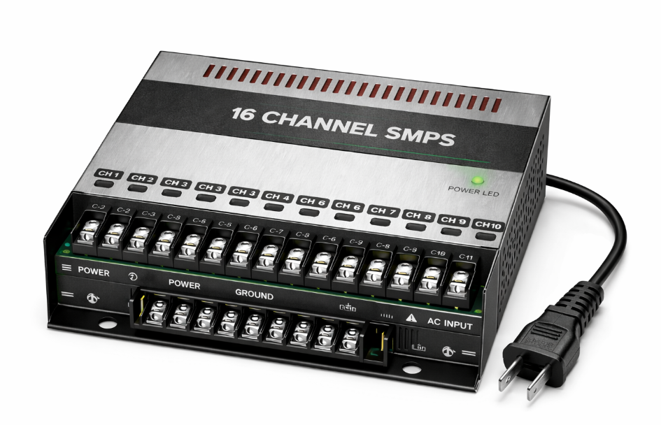 A powerful 16-channel SMPS for CCTV systems, delivering safe and stable power to sixteen cameras from one compact unit.