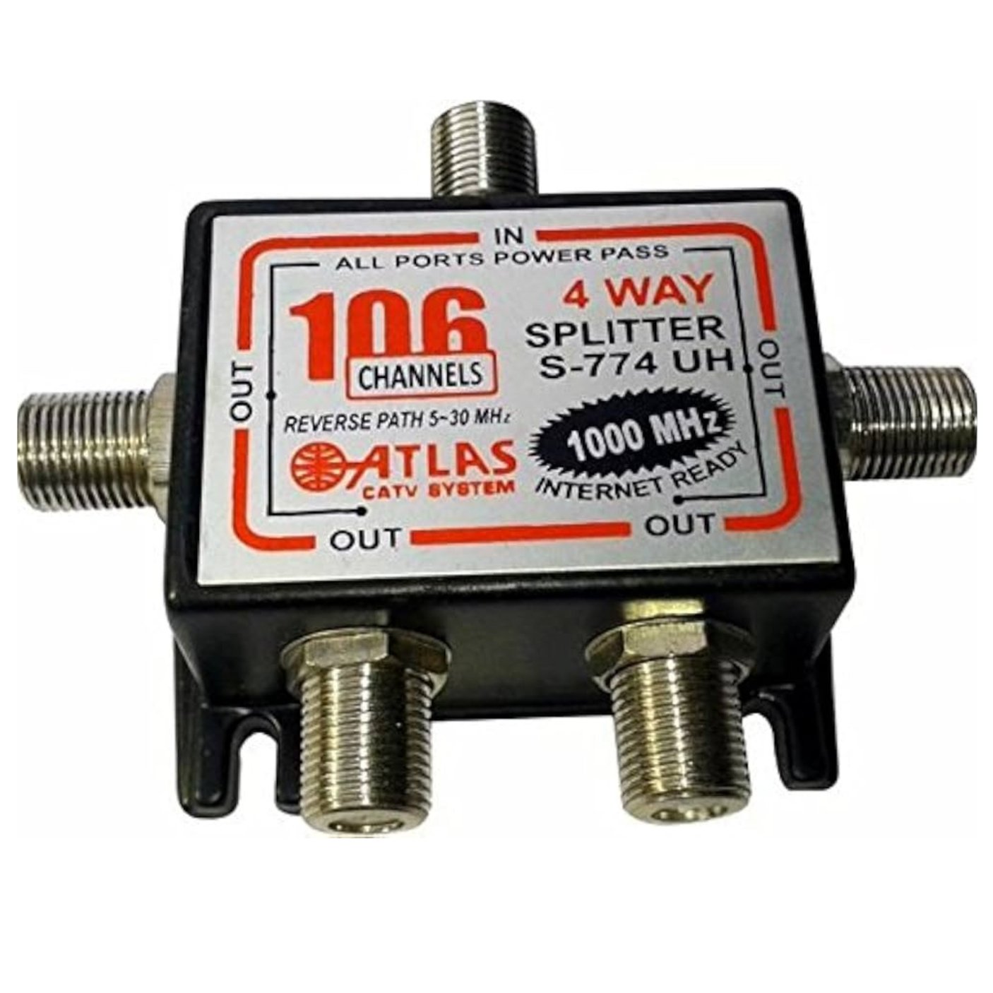 The 4 Way Splitter is a high-performance RF signal distribution device designed for CATV, cable TV, and broadband networks. It splits a single incoming RF signal into four balanced output signals, ensuring smooth and efficient signal distribution across multiple connection points.