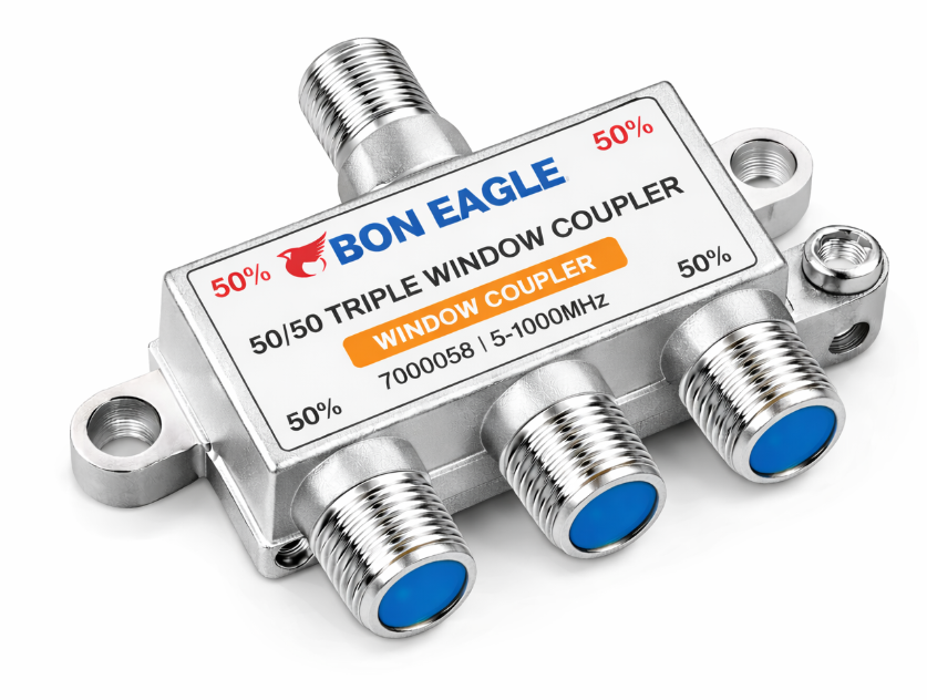 The BON EAGLE 50/50 Triple Window Coupler – Alias 7000059 is a precision RF signal distributor designed for CATV, FTTH, and broadband cable networks. Built with a rugged, corrosion-resistant metal body and high-grade shielding, it ensures consistent signal transmission with minimal insertion loss. This coupler evenly splits the incoming signal into 50% / 50% outputs across three ports, making it ideal for balanced network layouts where equal signal strength is required. Compact, durable, and professional-grade, it performs reliably in both indoor and outdoor installations.