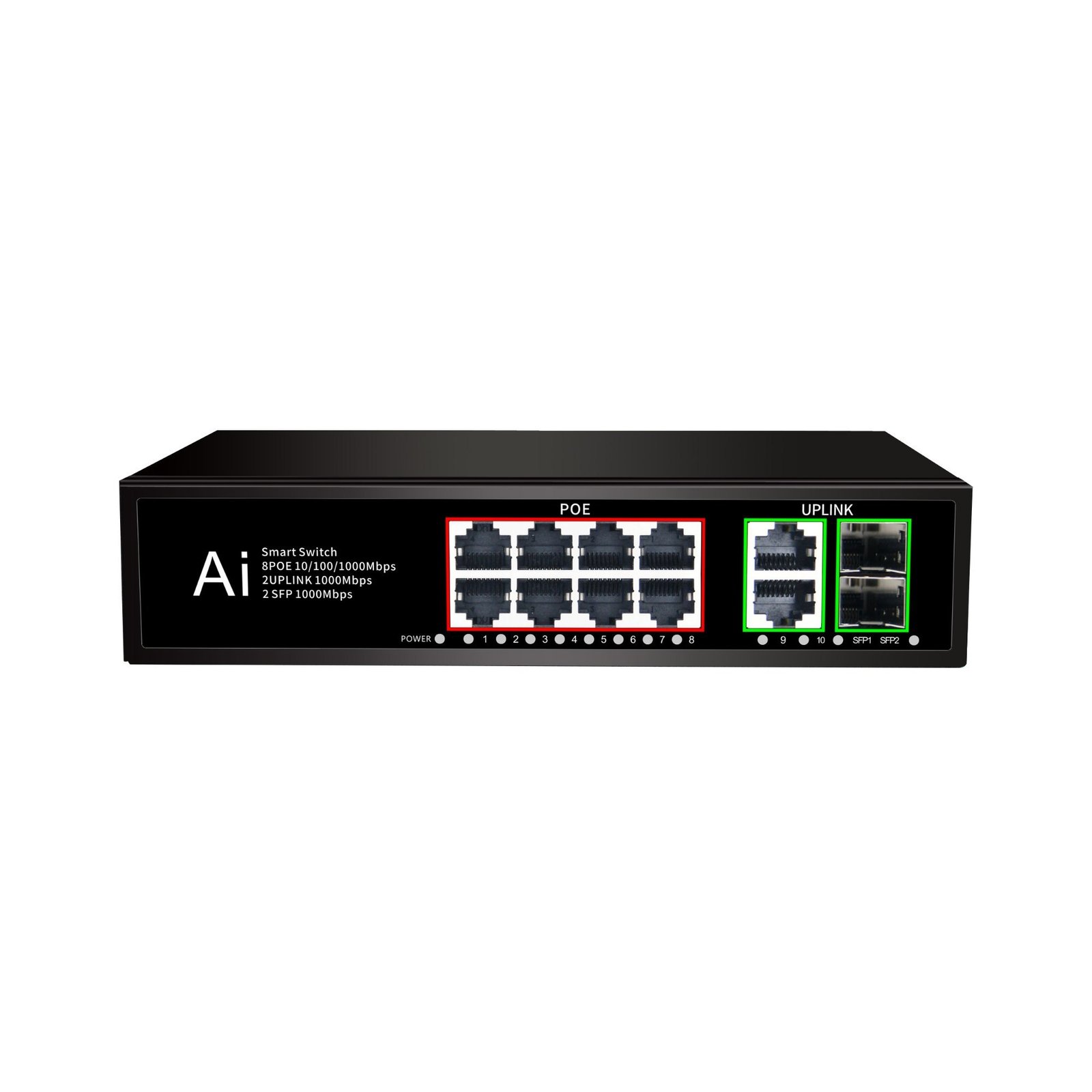 The 8 Port PoE + 2 SFP Switch is an advanced and reliable networking solution that combines Power over Ethernet (PoE) functionality with dual SFP fiber uplink ports for extended network coverage. Featuring eight PoE ports and two SFP ports, this switch allows users to power devices such as IP cameras, wireless access points, and VoIP phones while also enabling long-distance data transmission through fiber optic cables. The dual SFP ports provide flexibility for network expansion, redundancy, and improved performance in large-scale installations. Supporting IEEE 802.3af/at standards, the switch ensures compatibility with a wide range of PoE-enabled devices. Its plug-and-play functionality makes installation quick and hassle-free, requiring no configuration. Intelligent power management automatically detects connected devices and delivers the required power while protecting against overload, short circuits, and voltage fluctuations. The switch ensures stable and uninterrupted data transmission, making it ideal for CCTV surveillance systems and business networking environments.