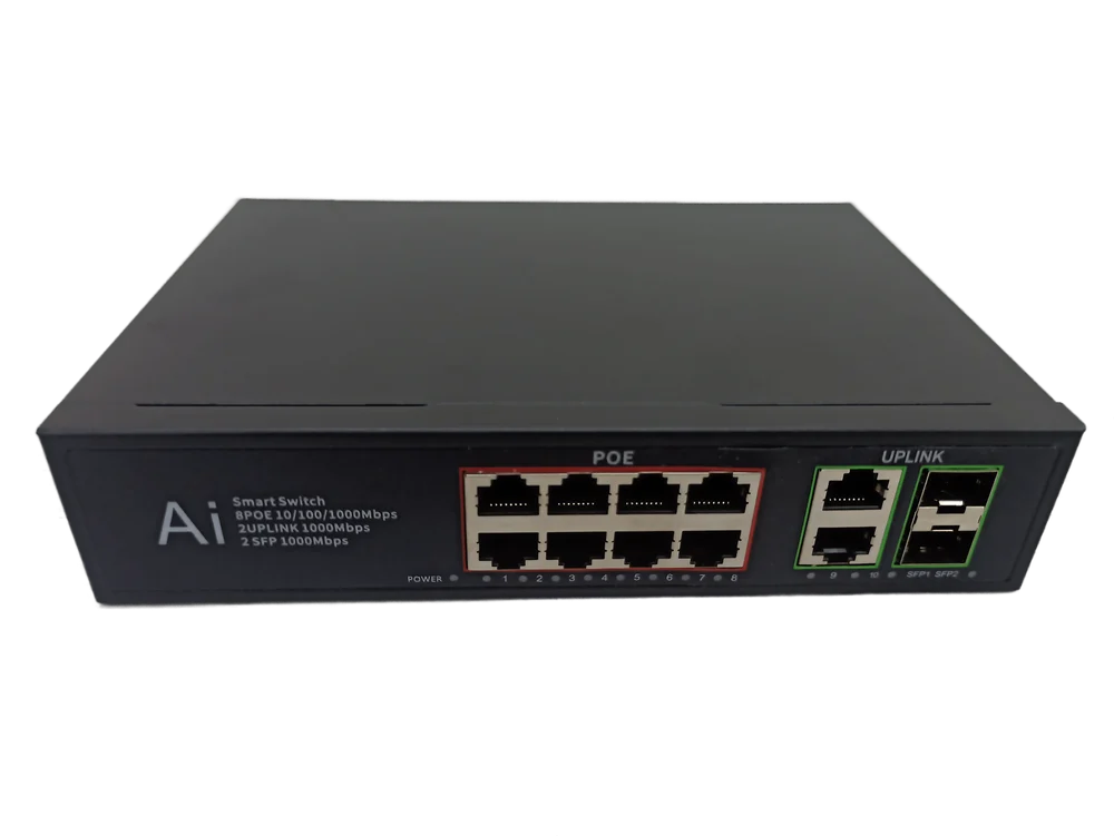 The 8 Port PoE Switch with Gigabit Uplink is a powerful and efficient networking device designed to simplify installations by combining Power over Ethernet (PoE) functionality with high-speed uplink capability. Featuring eight 10/100 Mbps PoE ports and dedicated Gigabit uplink ports, this switch allows seamless connection and power delivery to devices such as IP cameras, wireless access points, and VoIP phones without requiring separate power sources. The Gigabit uplink ports ensure fast data transmission to core networks, reducing bottlenecks and improving overall network performance. Supporting IEEE 802.3af/at standards, the switch is compatible with a wide range of PoE-enabled devices. Its plug-and-play design eliminates the need for configuration, enabling quick and hassle-free installation. Intelligent power management automatically detects connected devices and supplies appropriate power while protecting against overload, short circuits, and voltage fluctuations. The switch ensures stable and uninterrupted data transfer, making it ideal for CCTV surveillance systems and business environments. Designed with energy-efficient technology and a durable build,