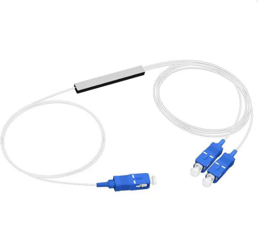 Compact 2-way PLC coupler without connectors, designed for efficient and low-loss optical signal splitting in FTTH networks. Perfect for ISPs and network technicians who require precise signal management with customizable termination.