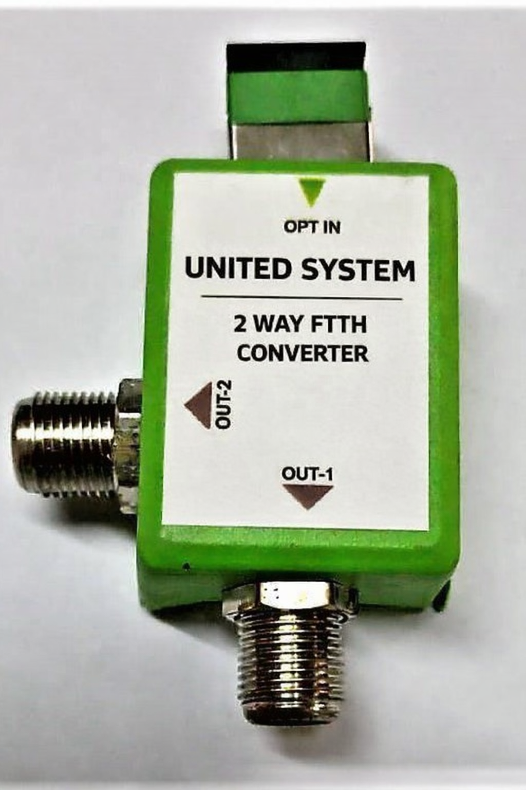 The FTTH Node 2 O/P 1310 is a high-performance fiber optic receiver used in Fiber to the Home (FTTH) and CATV distribution systems. It receives optical signals at 1310 nm wavelength and converts them into RF signals, providing two RF output ports for distribution.