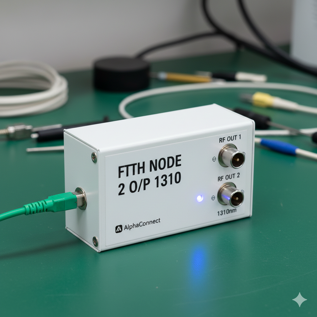 Operating at a wavelength of 1310nm, this node offers excellent performance with low noise, minimal distortion, and high sensitivity. The dual output design allows signal distribution to multiple endpoints, making it ideal for residential buildings, apartments, and small network setups.