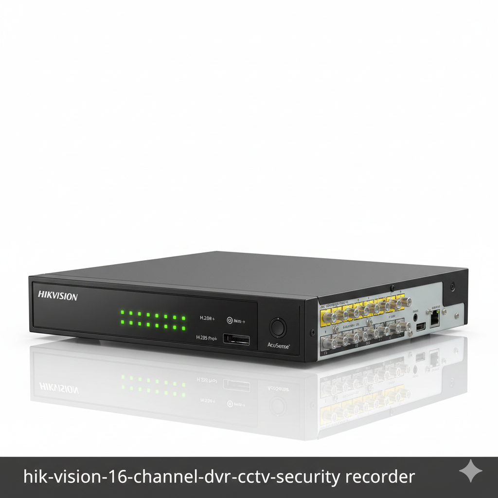The Hik Vision 16-Channel DVR is a high-performance digital video recorder designed to support up to sixteen CCTV cameras for large-scale surveillance systems. Ideal for offices, commercial buildings, warehouses, schools, and retail spaces, this DVR delivers high-definition recording, advanced H.265+ compression, remote access, and secure data storage. Built for reliability and professional security management, it ensures continuous monitoring and superior video performance.