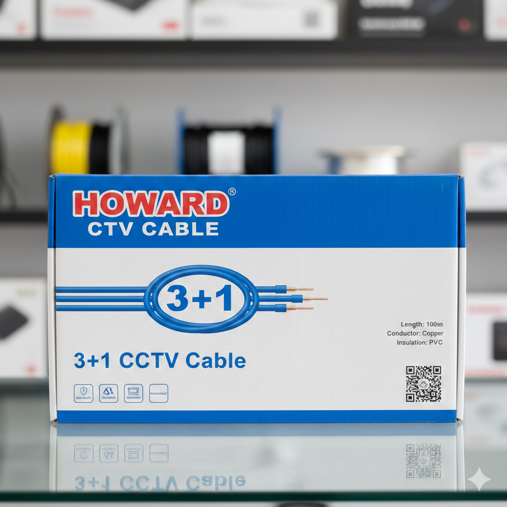 Designed for both residential and commercial applications, the HOWARD 3+1 CCTV cable supports long-distance transmission, making it ideal for large buildings, warehouses, and outdoor installations. It is compatible with analog CCTV cameras, DVR systems, and other security equipment.