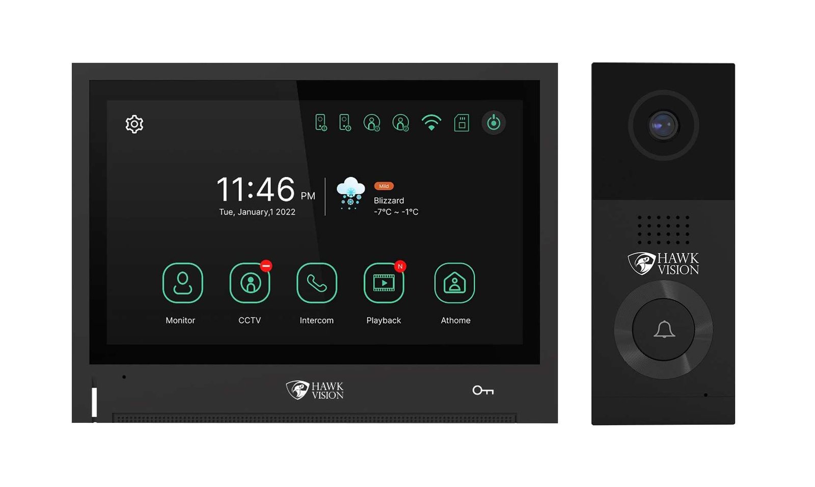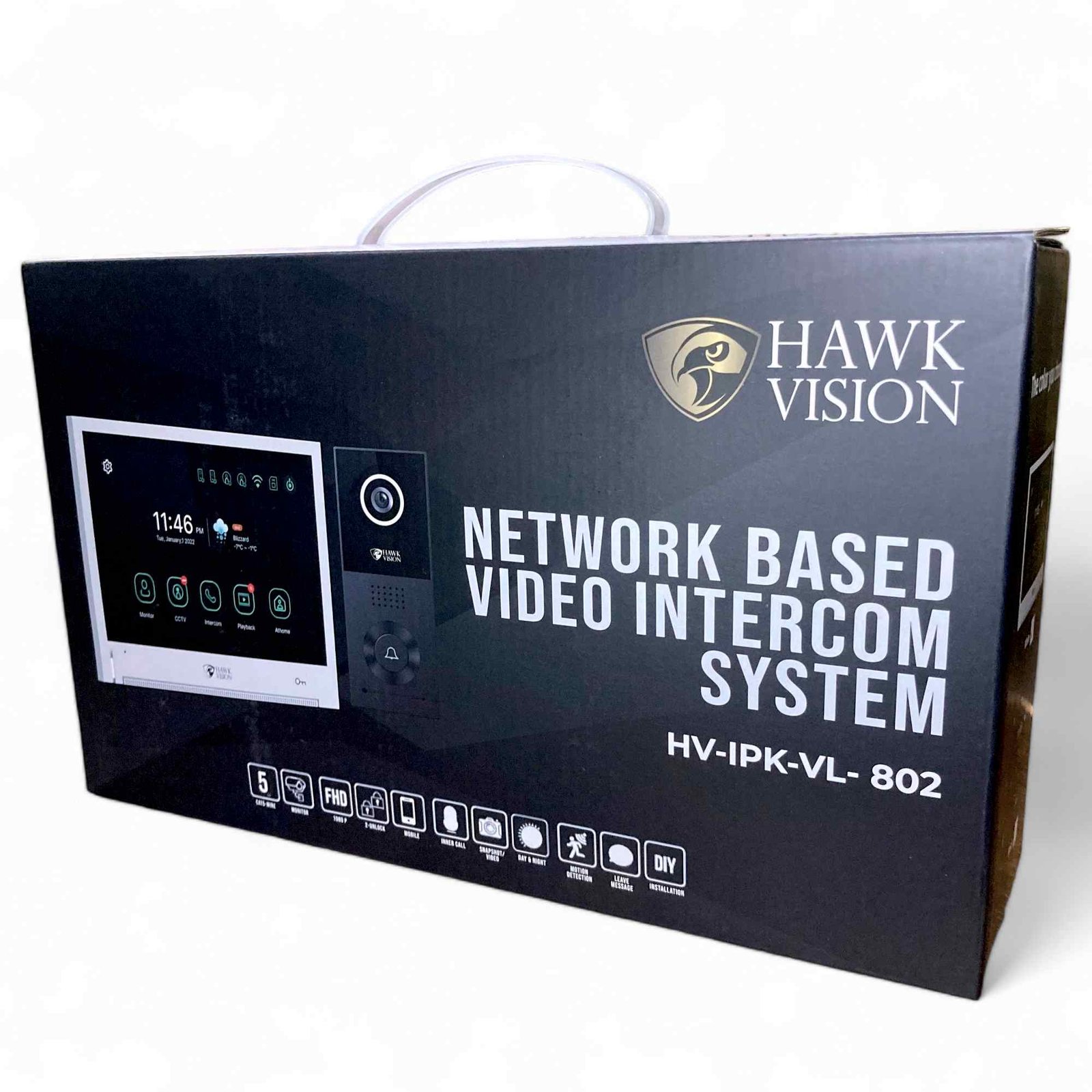 The Hawkvision HV-IPK-KL-802 is a complete IP PoE video door phone combo kit featuring an 8-inch capacitive touchscreen indoor master monitor (1080P high-resolution IPS display) paired with a high-quality outdoor station for modern network-based security. This smart video door phone kit delivers crystal-clear 1080P FHD video with wide-angle coverage, seamless two-way intercom, IR night vision for 24/7 low-light monitoring, and remote viewing/unlocking via the HawkSmart app on your smartphone. Supporting PoE (Power over Ethernet) and WiFi connectivity, it simplifies installation with single Cat-6 cabling (power + data) and enables plug-and-play network setup with auto IP allocation.