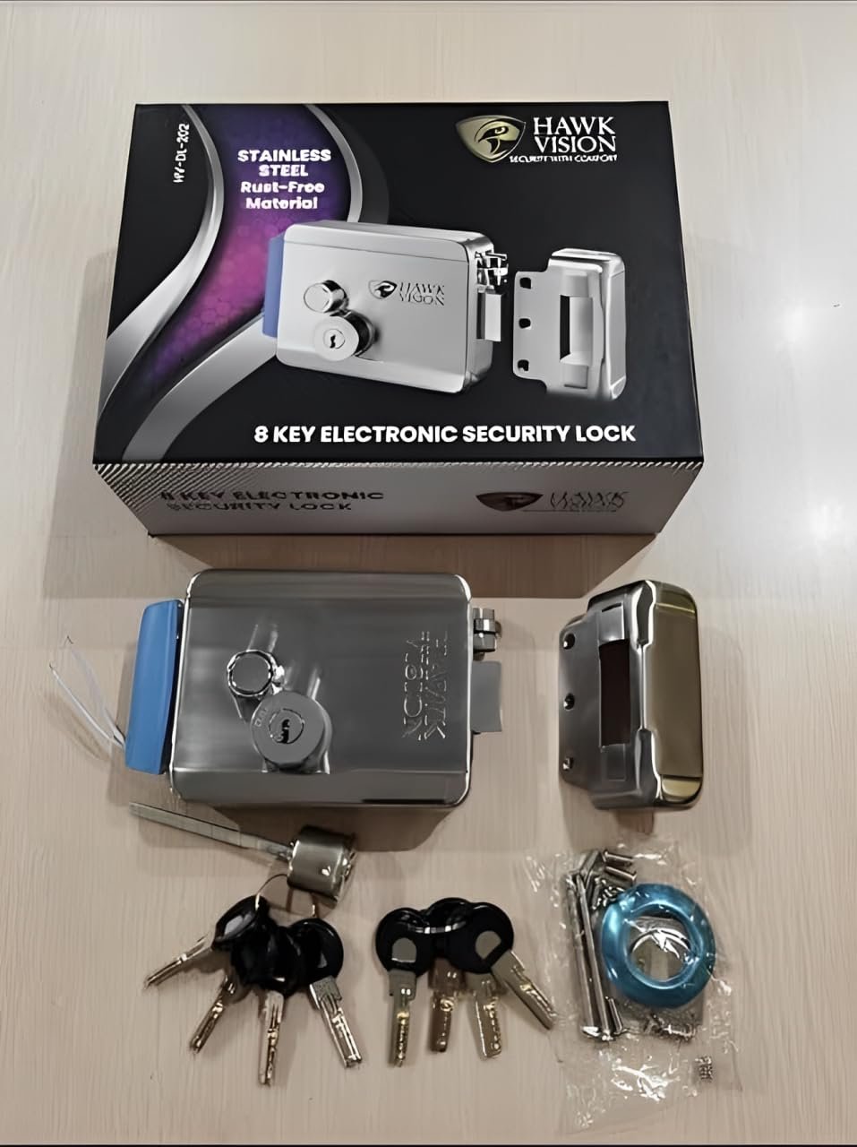 The HV‑DL‑202 Electric Door Lock is a premium security solution designed for both metal and wooden doors. Equipped with 8 computerised keys, it allows convenient manual access alongside electronic unlocking. Its fail‑secure (NO) operation ensures your doors stay locked even during power outages, providing uninterrupted protection. Crafted with stainless steel construction, this lock is built for durability, anti-theft strength, and smooth operation. Ideal for homes, offices, and commercial spaces, the HV‑DL‑202 delivers robust security, easy installation, and reliable long-term performance.