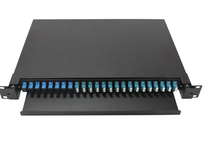 Patch Panel Fully Loaded 24 LC is a high-density fiber management solution engineered for seamless organization and termination of optical fiber networks. Designed in a standard 1U 19-inch rack format, it comes pre-installed with 24 LC adapters, making it ready for immediate deployment in data centers, ISPs, enterprise LANs, and FTTH setups. Its smooth sliding tray allows quick access for splicing, inspection, and maintenance, while the durable metal enclosure ensures long-term protection and stability. Supporting both single-mode and multi-mode fibers, this patch panel delivers clean cable routing, minimal signal loss, and a professional finish for any structured cabling environment.