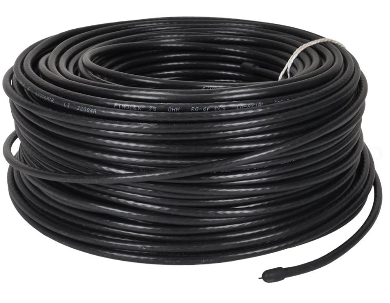 The RG6 CCS Coil (Black) is a high-performance coaxial cable designed for CATV, DTH, CCTV, and broadband signal transmission. Built with a Copper Clad Steel (CCS) conductor, this cable offers excellent signal strength over long distances while maintaining durability and cost efficiency. Its multi-layer shielding minimizes interference and ensures clear, stable signal flow for TV, internet, and surveillance systems. The rugged black outer jacket provides added protection against abrasion, heat, and environmental stress, making it suitable for both indoor and outdoor installations. Ideal for homes, commercial buildings, and ISP networks, this RG6 CCS coil delivers reliable performance with long service life.