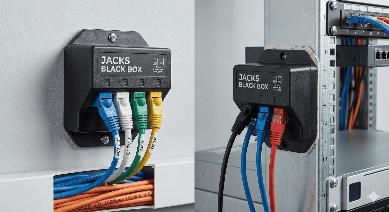 The Jacks Black Box is widely used in offices, homes, server rooms, CCTV installations, and networking environments where reliable Ethernet connectivity is required. Its simple design allows quick installation with screws or adhesive mounting, making it ideal for both professional installers and DIY network setups.