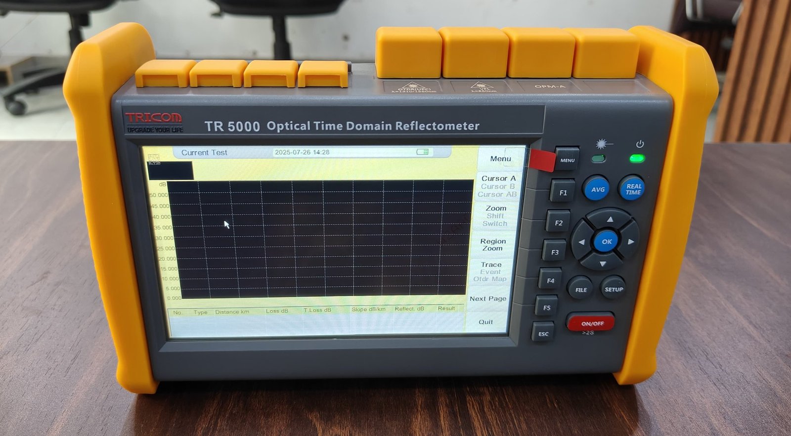 The TRICOM OTDR is a professional fiber optic testing device designed to measure and analyze the performance of optical fiber networks. It provides detailed insights into fiber length, signal loss, reflection points, and fault locations, helping technicians accurately diagnose issues in both single-mode and multi-mode fibers.