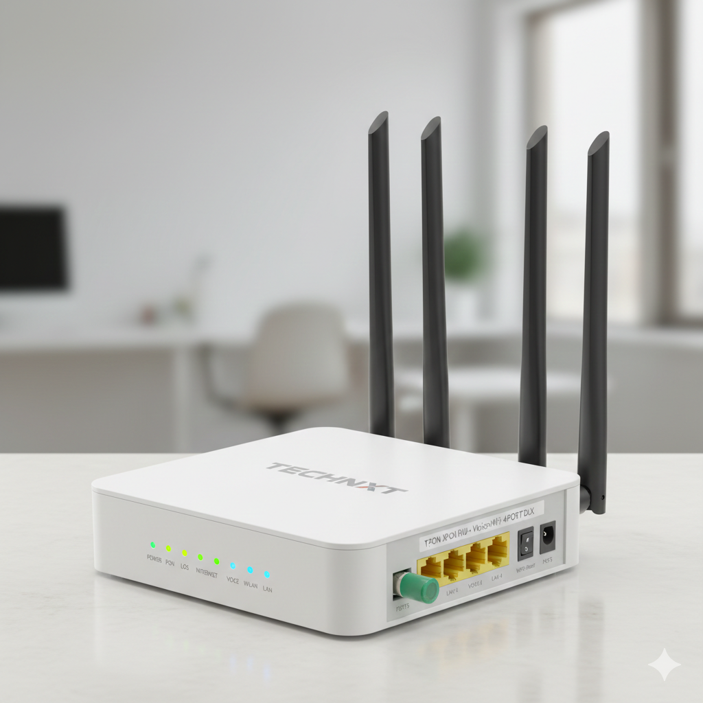 the XPON ONU + Voice + WiFi 4 Port DLX is an advanced and high-performance networking solution designed to meet the demands of modern fiber optic networks. Supporting both EPON and GPON technologies, this device offers flexible compatibility with different network infrastructures, making it ideal for FTTH deployments. It delivers fast, stable, and reliable internet connectivity, ensuring smooth browsing, streaming, and online operations.